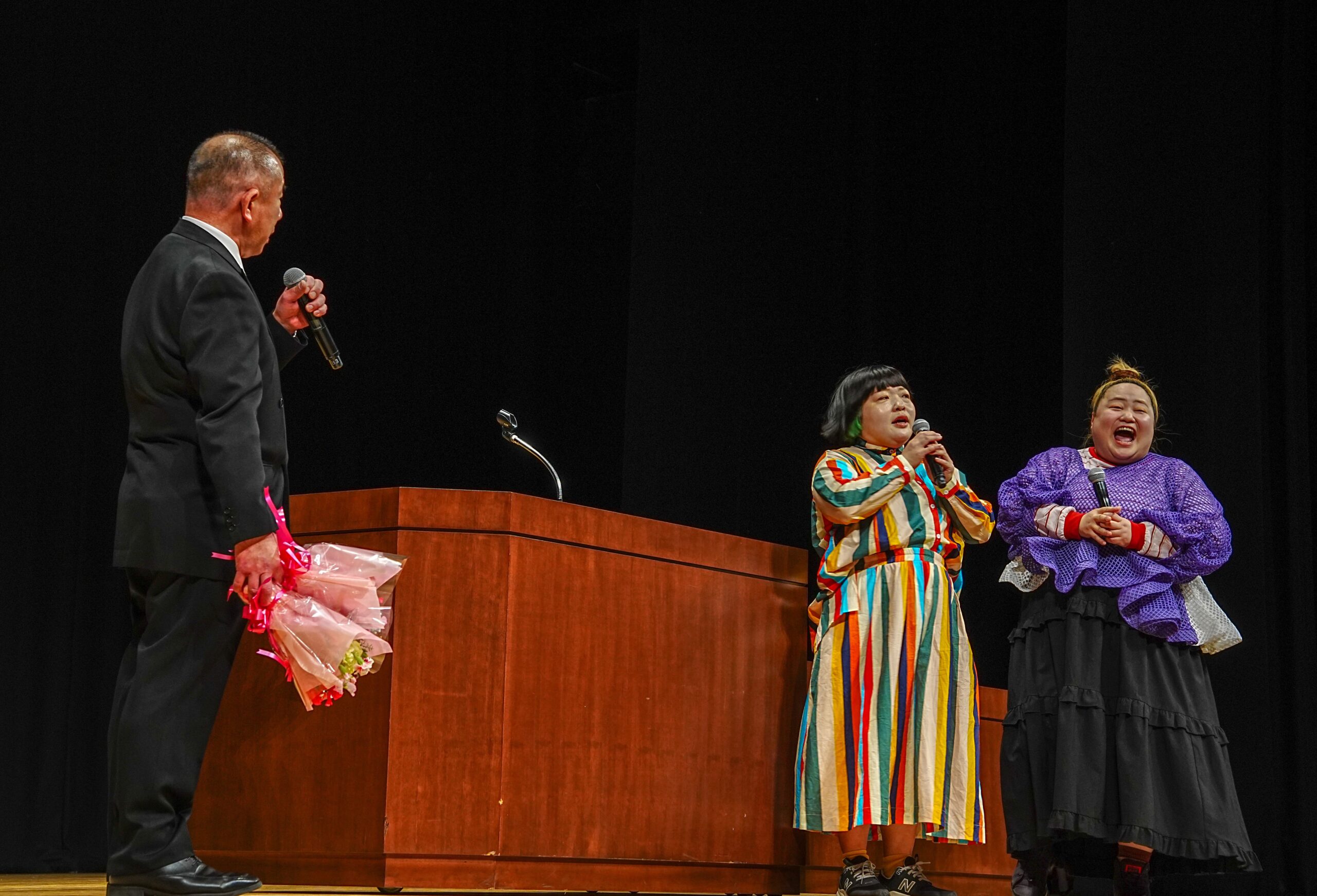 イベントの締めくくりには、本校校長先生とおかずクラブのお二人による特別トークが行われました。