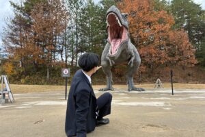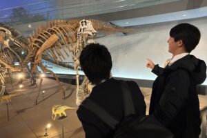 修学旅行2日目、最初の見学地は福井県立恐竜博物館です。世界三大恐竜博物館の一つと言われています。恐竜たちが並ぶ広大な空間に、みんな目を輝かせていました。