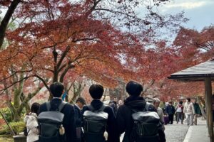 本日は、市内のホテルから、各々タクシーに乗って京都市内の班別自主行動を行いました。 紅葉も鮮やかな京都の観光スポットを巡りながら、友情を深め、思い出深い一日になったようです。 全ての班が余裕を持って定刻までに京都駅に集合し、新幹線の車内では旅行の思い出を笑顔で話す姿が見られました。 この修学旅行を通して学びを深め、友情を深めた経験を今後の学校生活にいかしてくれることを期待しています。 ありがとうございました。