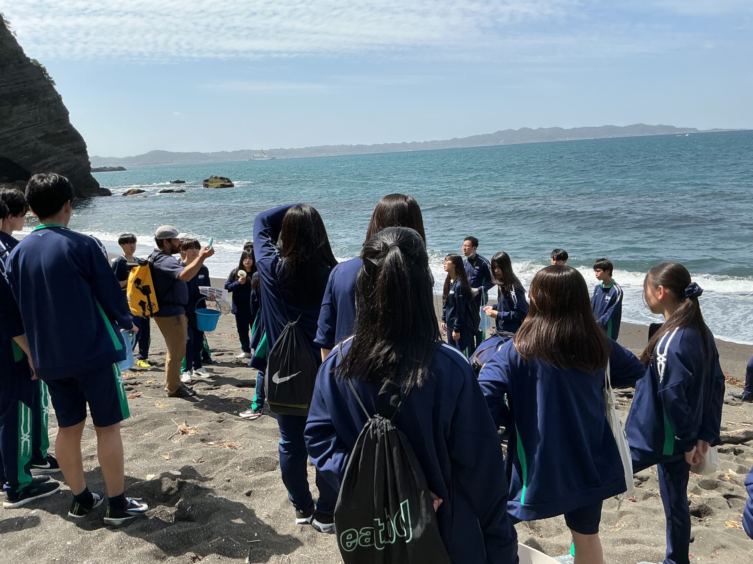 2日目のビーチコーミングでは、漂着ごみを拾いながら、海洋ごみ問題の現状と自分たちにできることを学びました。