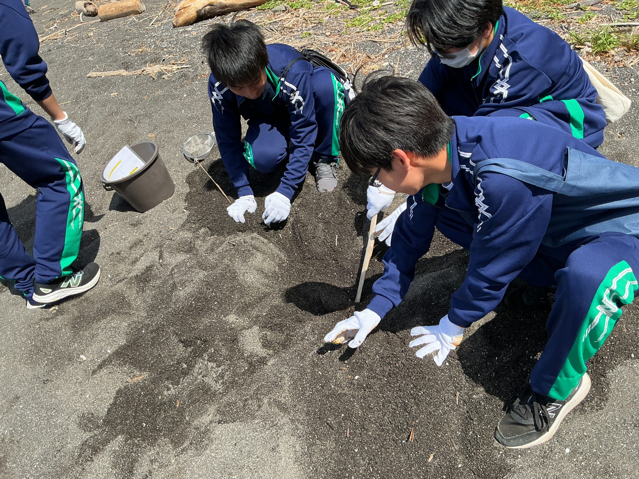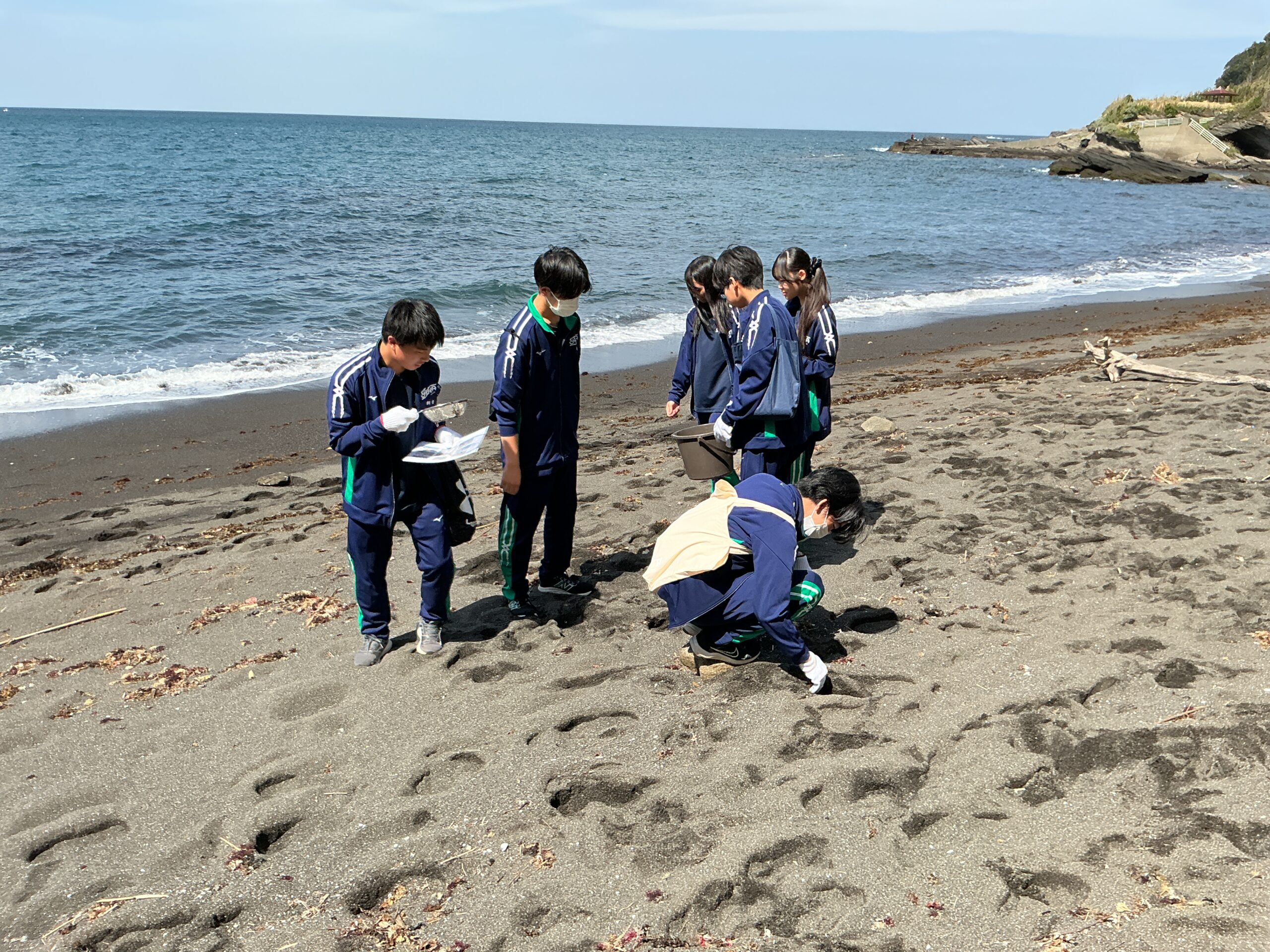 夏のような青空の下、ごみだけではなく、美しい貝殻やシーグラスを手に取り、海洋環境保護について真剣に学んでいました。