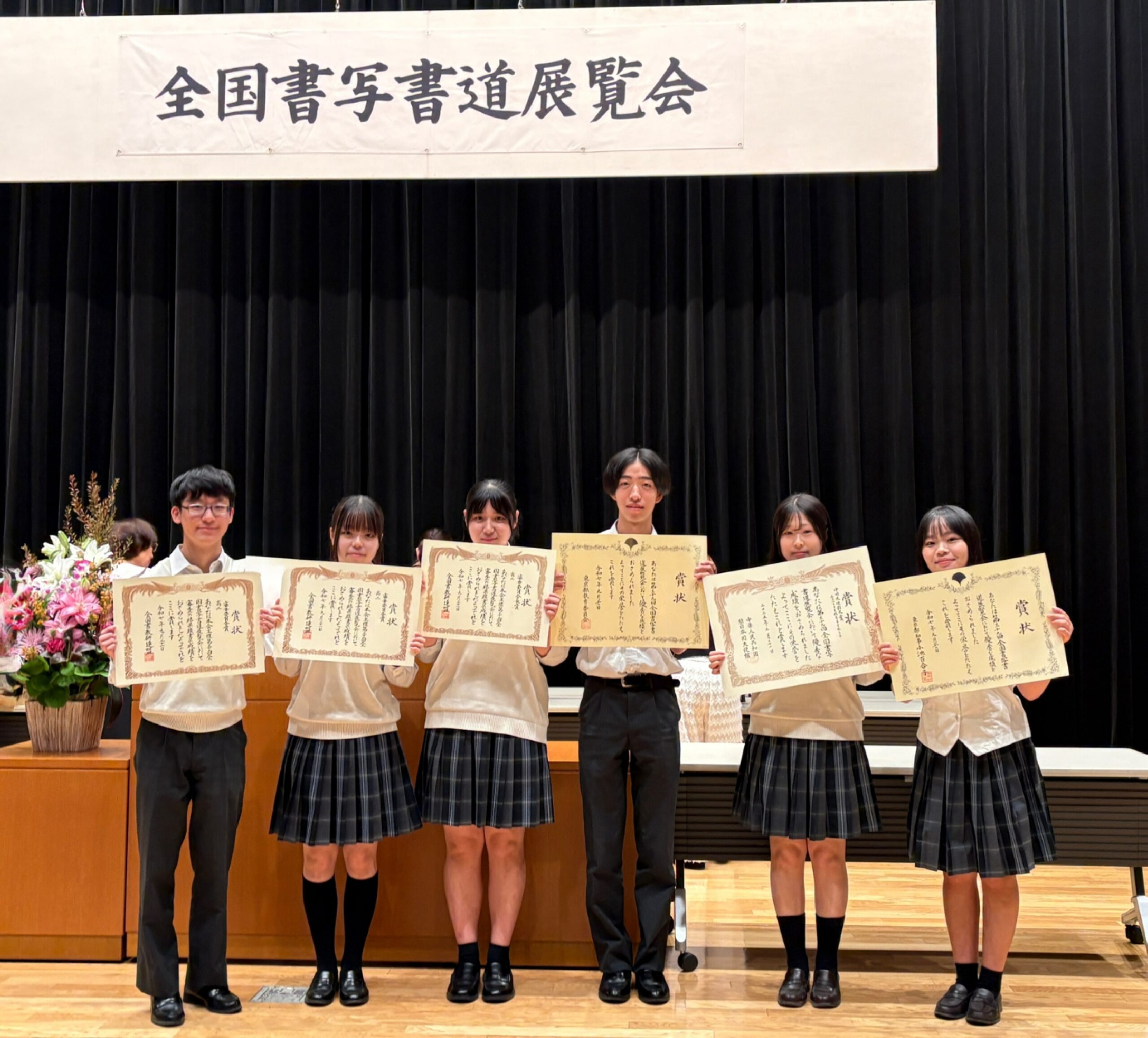 9月21日、第39回 全国書写書道展表彰式が文京区シビックセンター小ホールにおいて開催されました。 多くの受賞者のなか、本校書道部生徒から8名の生徒が入賞しました。 ・ 中国大使館大賞 ・ 東京都知事賞 ・ 東京都教育委員会賞 ・ 中国大使館文化部賞 ・ 書研会長賞 ・ 審査委員会長賞 ・ 審査委員会賞(2名)